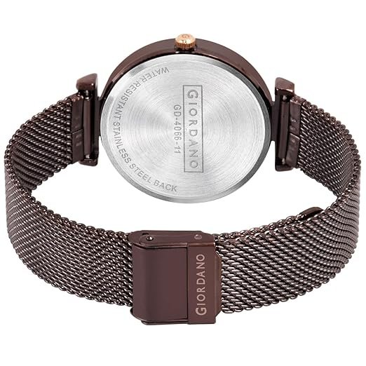 - Dial Color : Brown, Case Shape : Round, Band Color : Brown, Strap Material : Mesh Metal